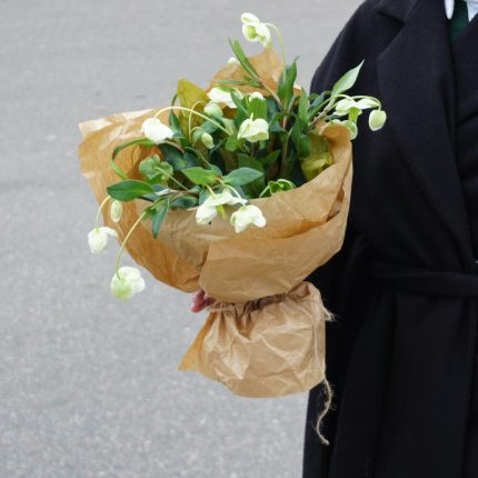 Съедобный зимний букет из орхидеи цимбидиум, лаймов, лимонов, айвы, авокадо и эвкалипта “Зимний коктейль”