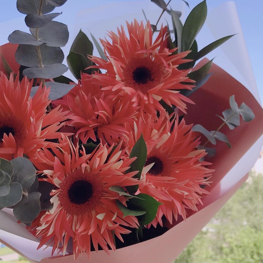 Очаровательный букет из изысканных свежих цветов.В составе: махровые гебреры, эвкалипт, рускусБукет цветов — обязательный презент для прекрасной половины человечества. Это красивый способ сделать женщину счастливой.Чтобы букет радовал дольше необходимо:❤ Ставить его в прохладном месте, избегая отопительных приборов и прямых солнечных лучей. ❤ Наполнить вазу большим количеством воды. ❤ Как можно чаще освежать срез и воду. Почему выбирают нас? – Работаем на качество. – В подарок к каждому букету витамины для цветов. – Бережно упакуем в транспортировочную пленку, чтобы защитить во время доставки от любых погодных условий. – Приложим инструкцию, как правильно ухаживать за цветами.Сохраняйте товар в подборках, чтобы не потерять