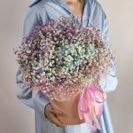 Гипсофила – 9 шт.Лента – 1 шт.Тишью – 1 шт.Коробка шляпная – 1 шт.Оазис флористический – 1 шт.
