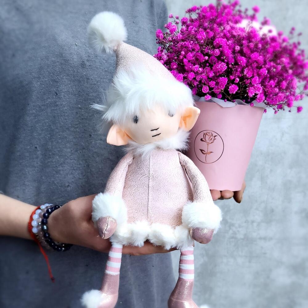 Гипсофила – 5 шт.Хлопок – 1 шт.Стакан – 1 шт.игрушка эльф – 1 шт.