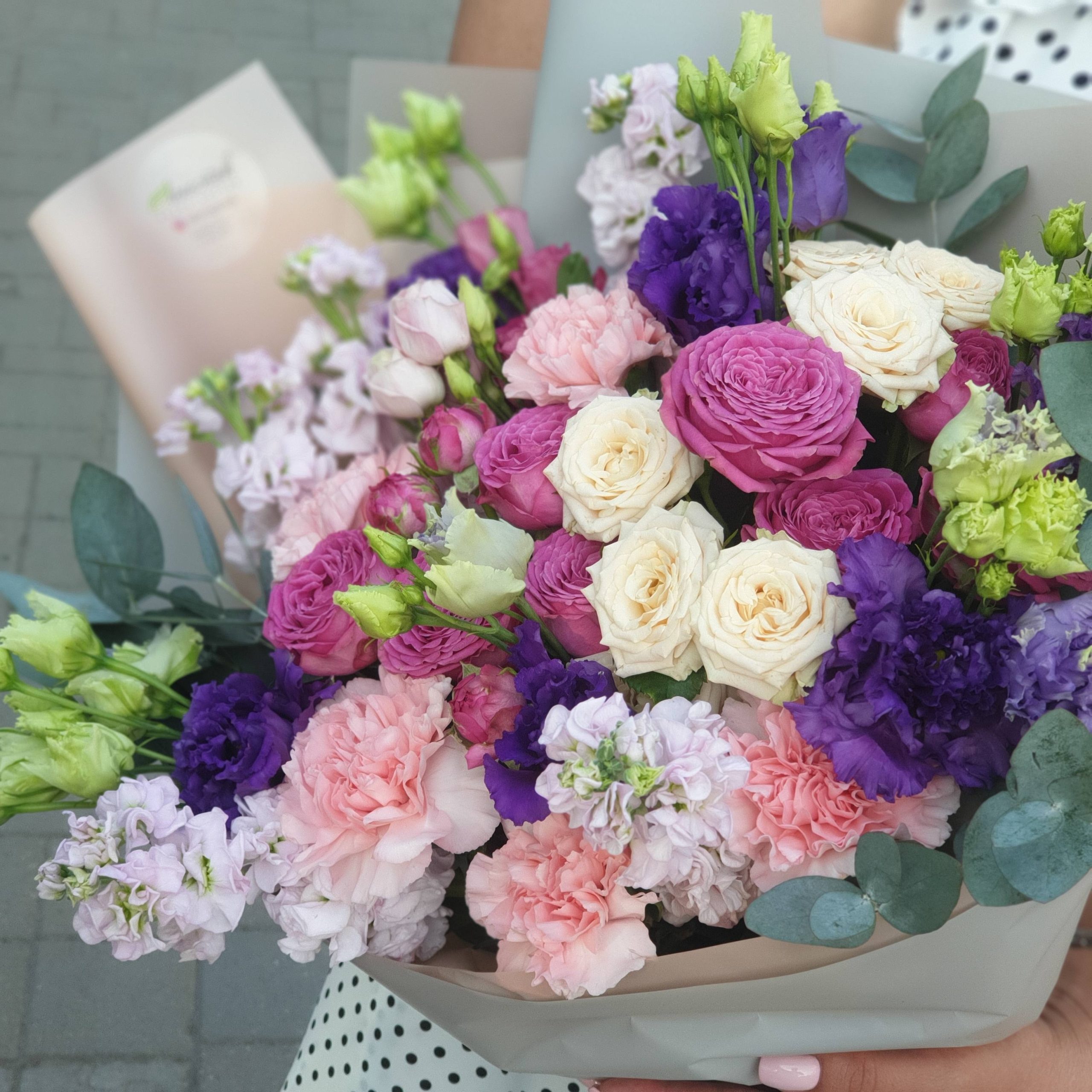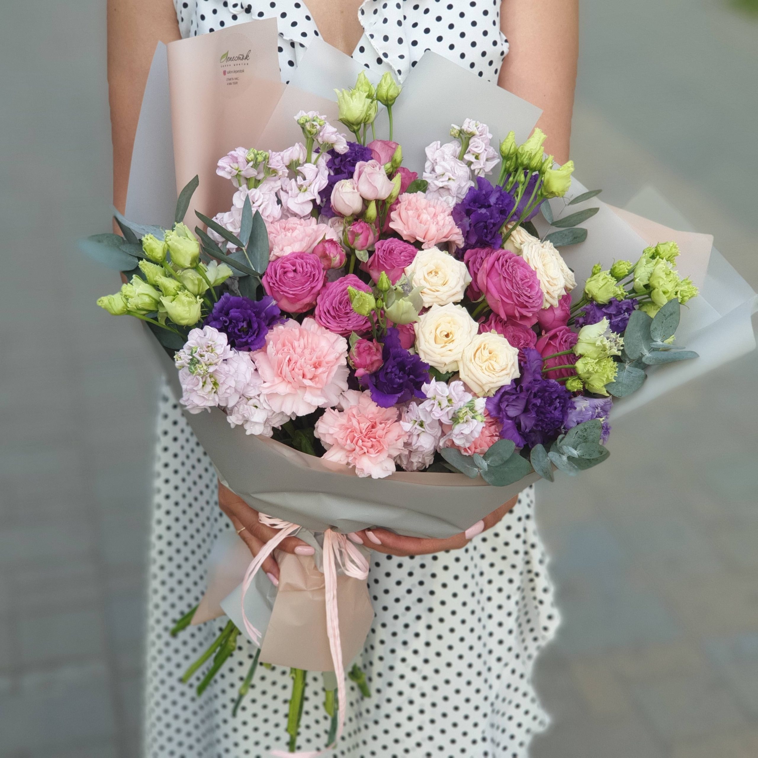 Гвоздики, Кустовые розы, Лизиантусы, Пионовидные розы, Розы