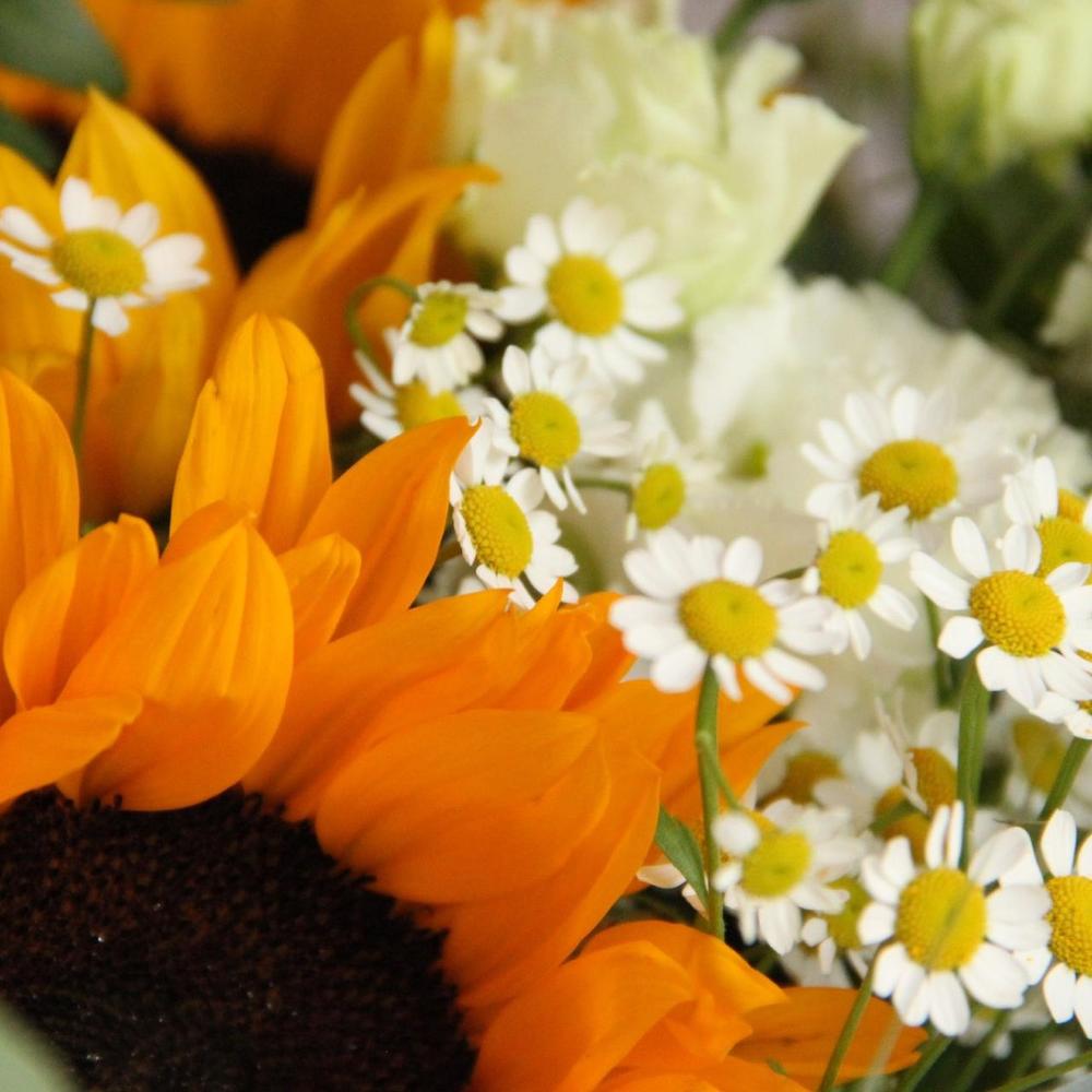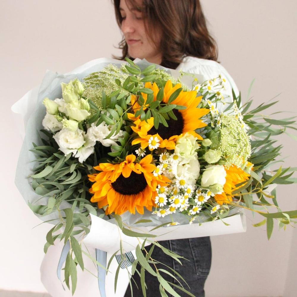 Подсолнухи, ромашки, зонтики и эвкалипт