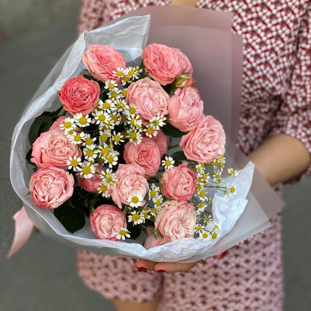 Ажурная кустовая роза с ромашкой
