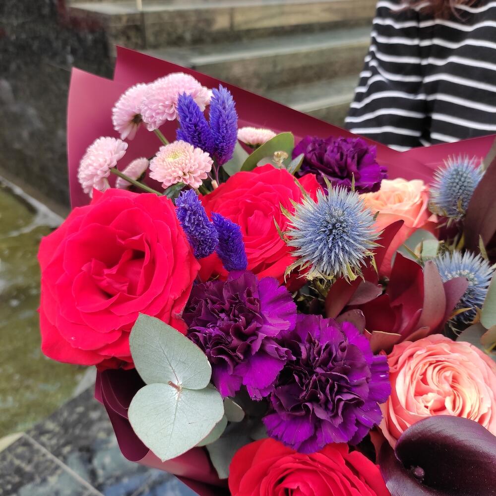 Borsch - Букет из алых роз,эрингиума и калл
