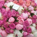 Пион Сара Бернар( Paeonia ‘Sarah Bernhardt’), Пион Салмон, Пион белый Мадам Клод Тэн (Mme Claude Tain), Кустовая пионовидная роза Силва Пинк (Silva Pink), Кустовая, пионовидная роза Misty Bubbles (Мисти Баблс), Роза кустовая Классик сенсешн (Classic Sensation), Стильная упаковка, Кустовая роза Корал Йо Йо, Лента атласная