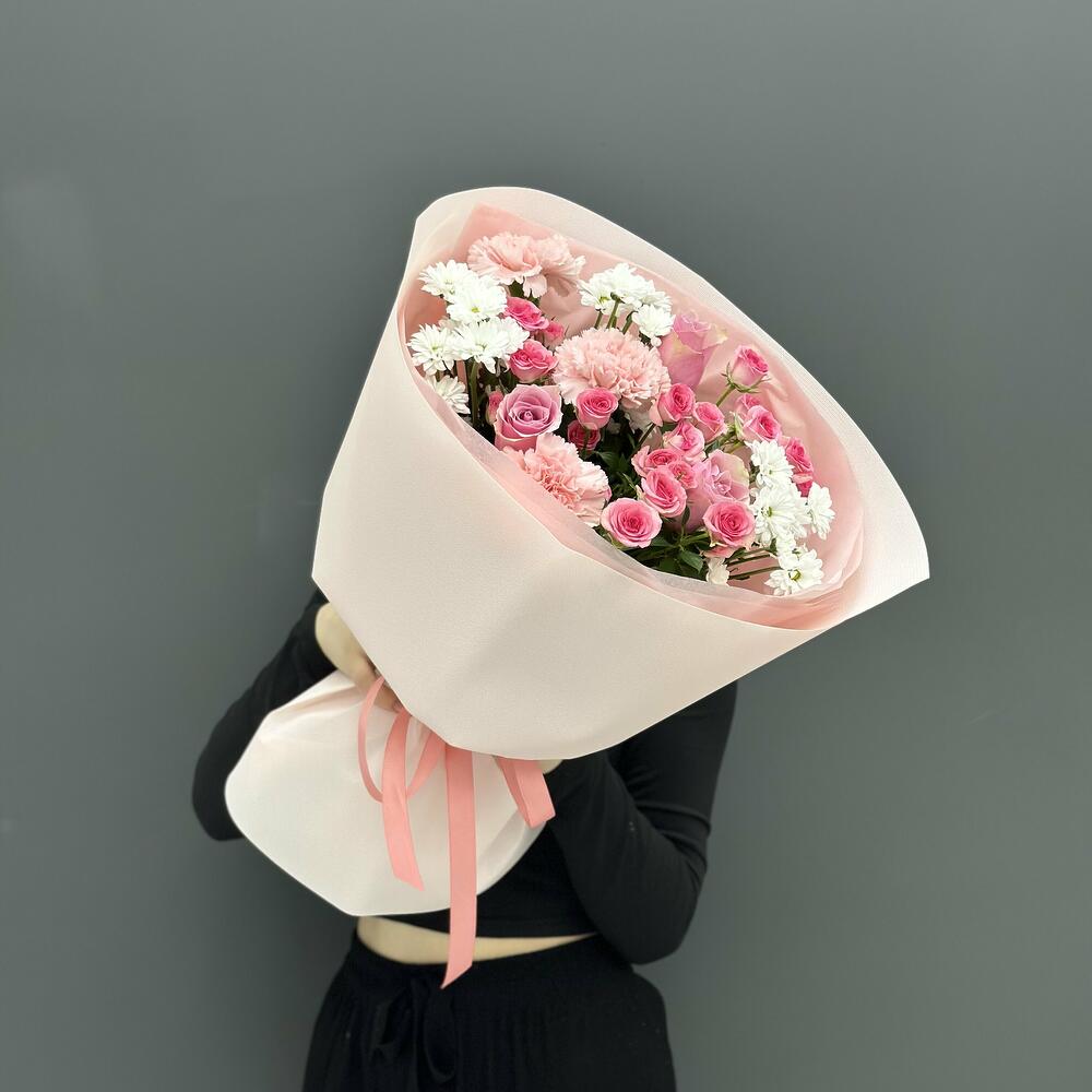 Гвоздики, Лизиантусы, Розы, Тюльпаны