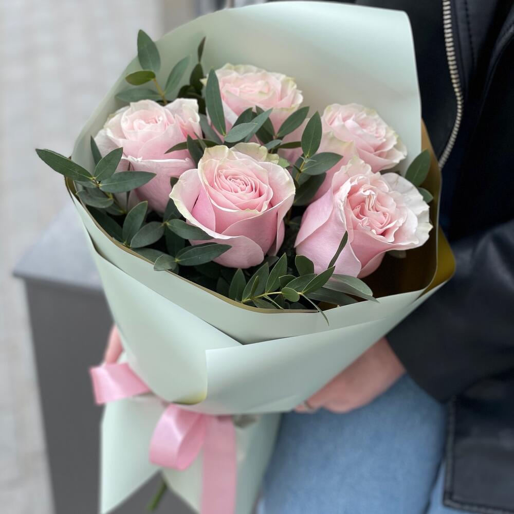 Букет Женственный из 5 роз и эвкалипта