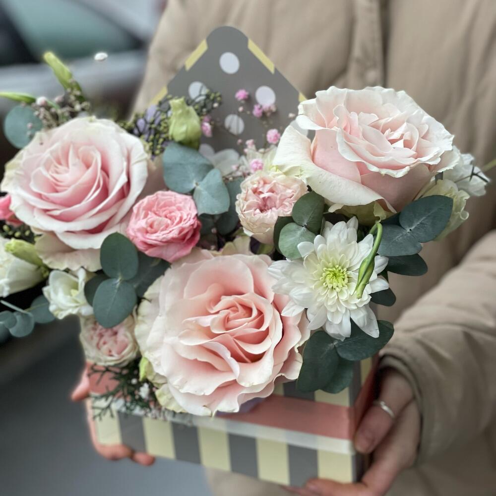 Цветы в коробке «Цветочное послание»