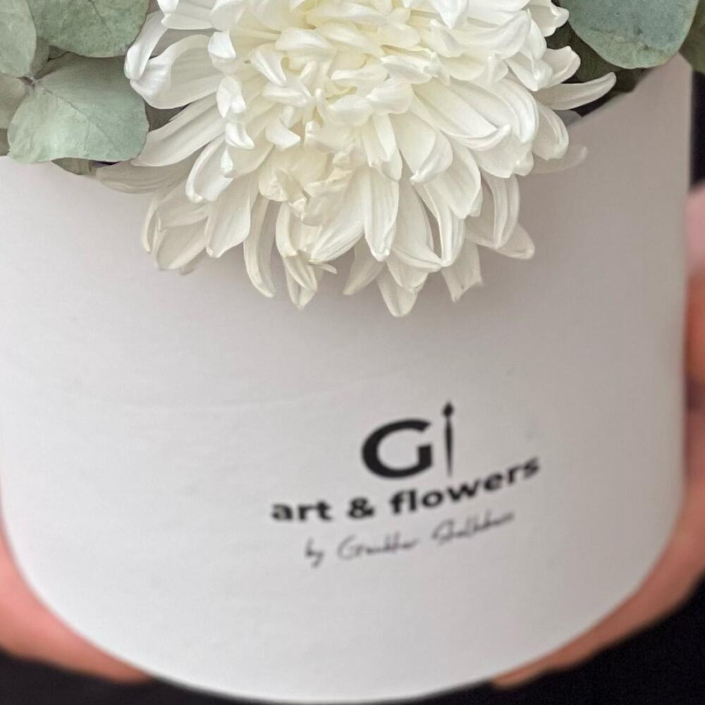 Хризантема – 3 шт. Кустовая роза – 2 шт. Эвкалипт – 2 шт.