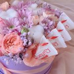 Цветы в шляпной коробке с конфетами Raffaello