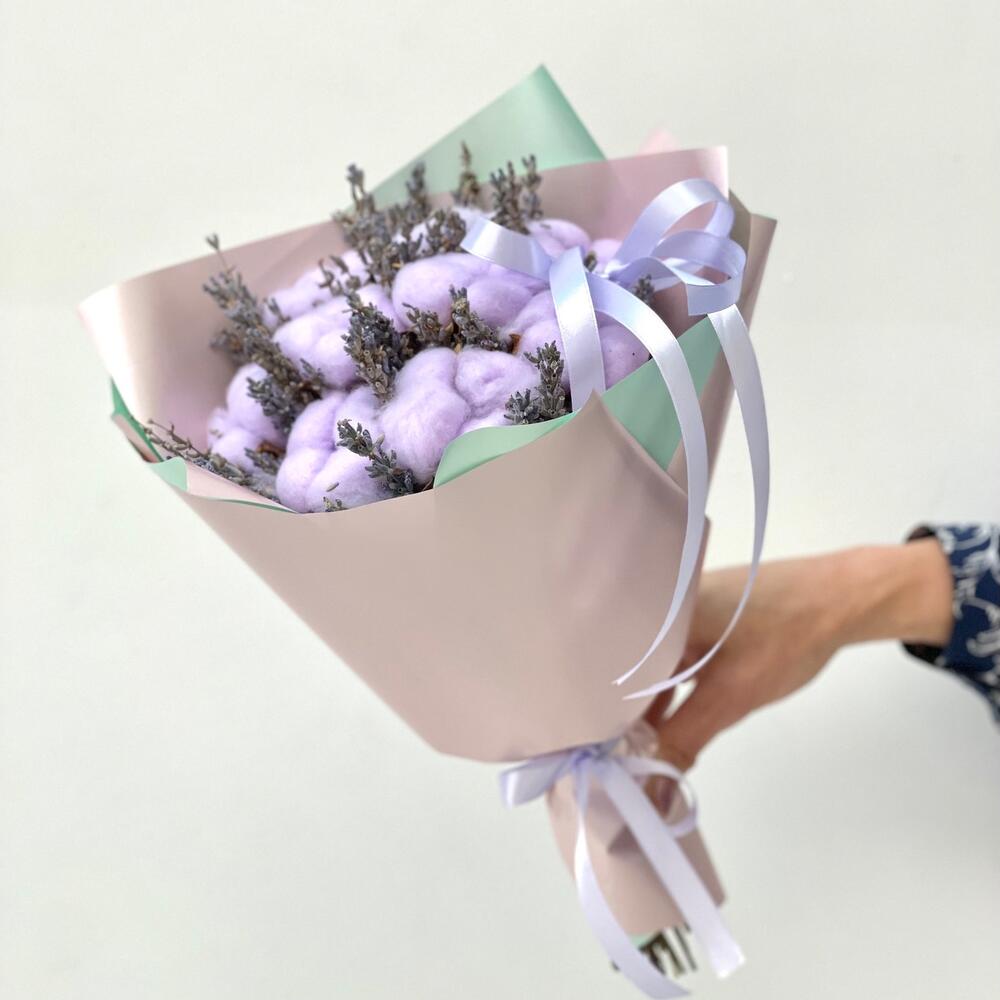Хлопок – 9 шт.бумага дизайнерская – 1 шт.Лента атласная – 1 шт.Лаванда – 15 шт.