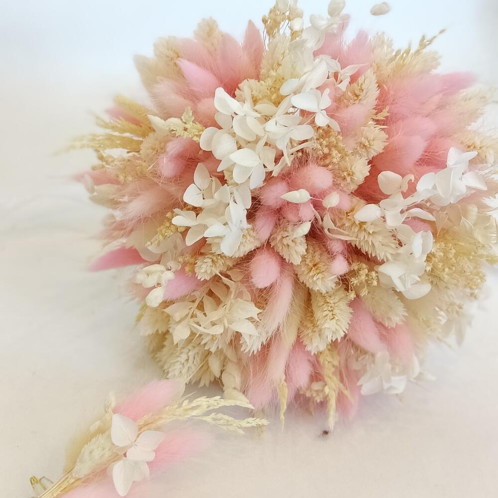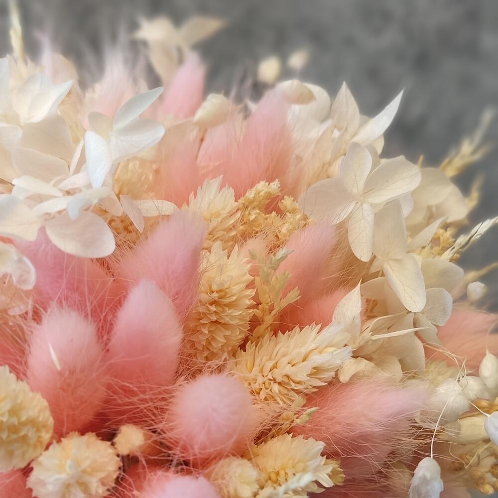 Лента атласная – 1 шт.Колоски – 40 шт.Лента органза – 1 шт.Фаларис – 70 шт.Бриза – 20 шт.Лагурус розовый – 70 шт.гортензия стабилизированная – 1 шт.лагурус нежно розовый – 70 шт.