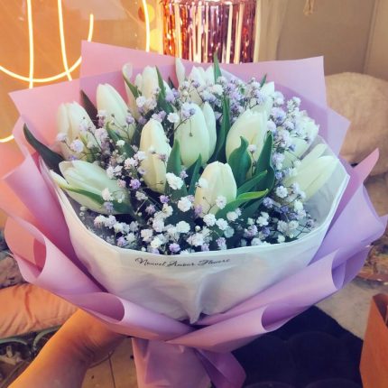 Класичний монобукет з 11 білих тюльпанів