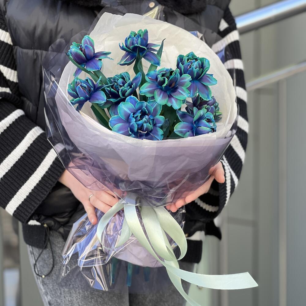 Букет Аквамарин из 9 тюльпанов vip