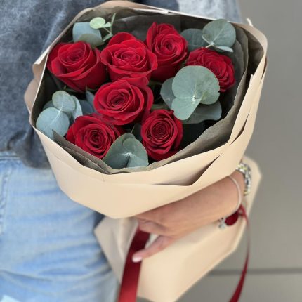 Букет Париж из красных роз и эвкалипта