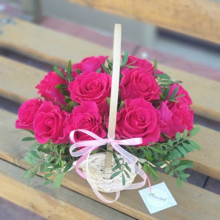 Корзинка из малиновых розочек