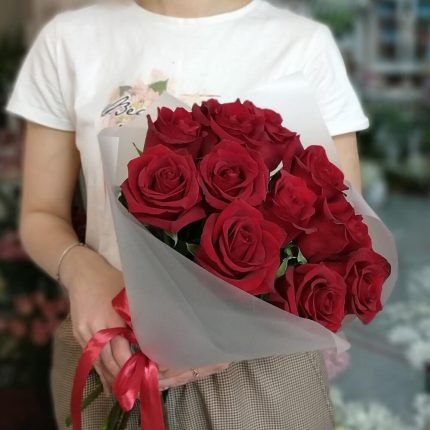 11 красных роз с оформлением Киев